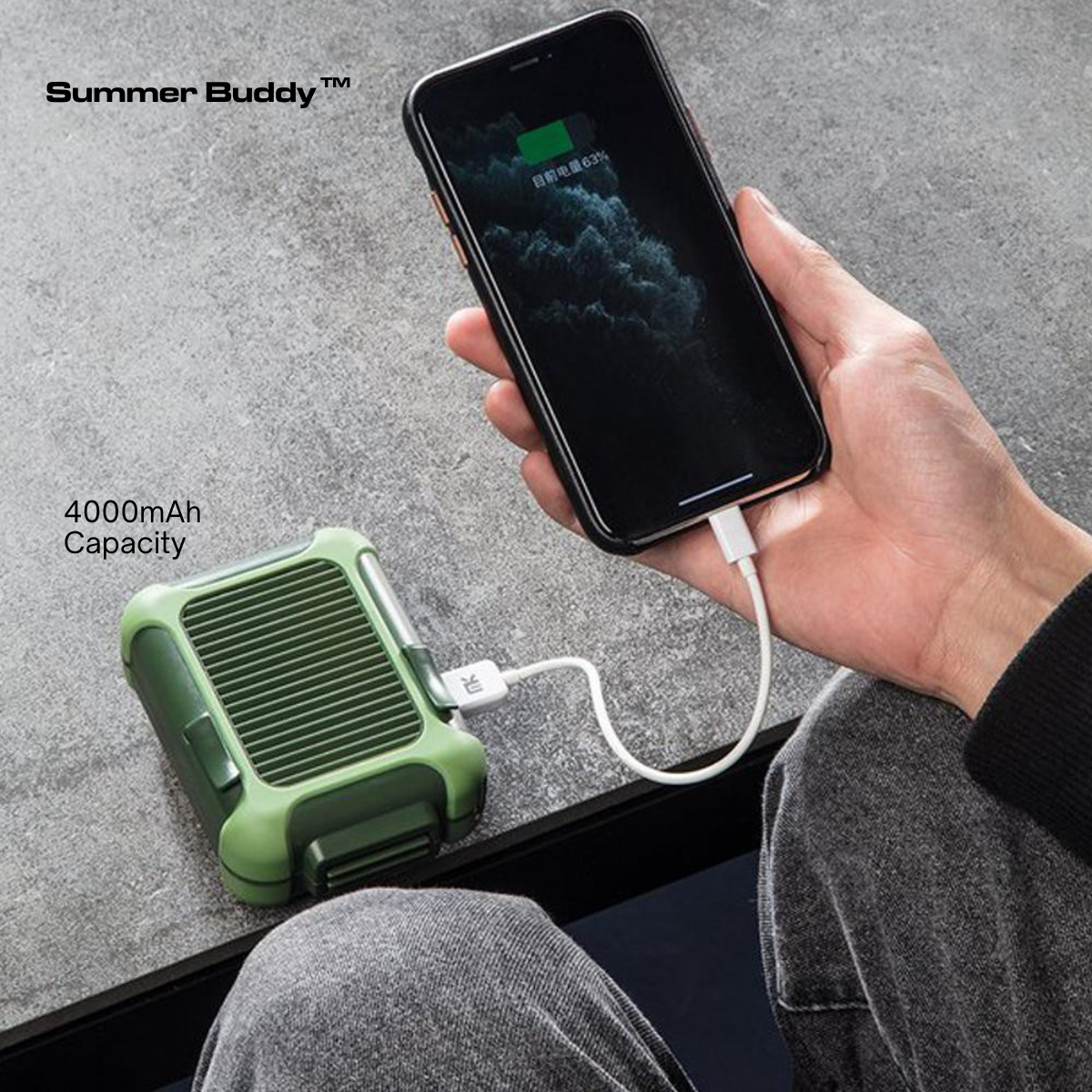 Running out of battery while out and about? SummerBuddy™ isn't just a cooling solution—it’s also a 4000mAh powerbank that keeps your devices charged. Whether it’s your phone, earbuds, or smartwatch, you’ll always have backup power in your pocket. Stay connected and stay cool with one must-have device!