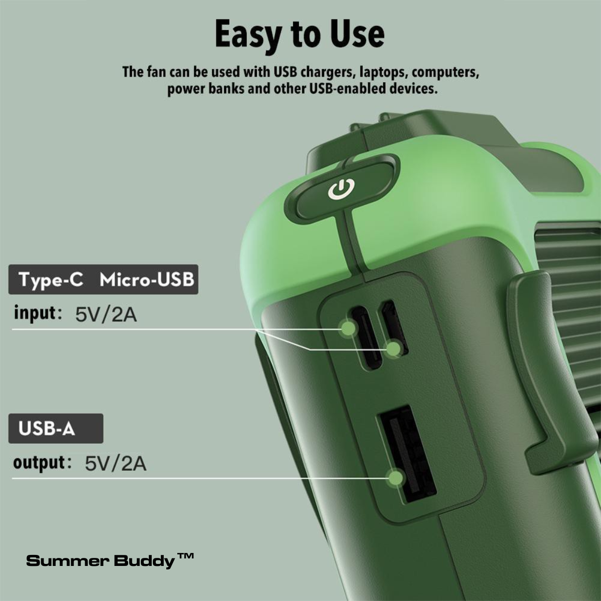 Why suffer in the heat when you can bring the breeze with you? SummerBuddy™ features a powerful yet compact fan with three adjustable speeds to keep you cool wherever you go. Whether you're commuting, traveling, or just relaxing at home, enjoy instant relief from the heat with a simple press of a button.